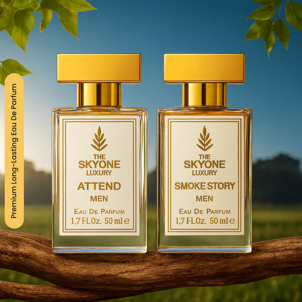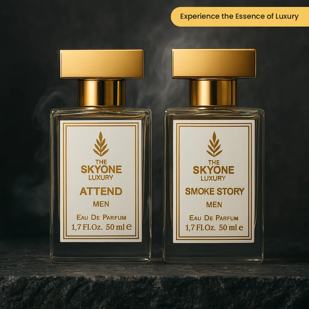 Attend offers fresh, bright masculine energy ideal for daytime use, while Smoke Story delivers a rich smoky-woody depth perfect for nights and special moments.
